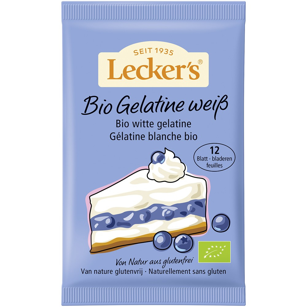 Gelatina de provinienta animala de la porc, fara gluten si de origine ecologica.Se poate folosi la preprarea cremelor, deserturilor, torturilor sau a geleurilor de fructe. Cele 12 foi de gelatina corespund la 20 grame si este suficient pentru 1 litru de lichid. Mod de preparare: se lasa la inmuiat in apa rece timp de aproximativ 5 minute, dupa care se taseaza usor intre palme. Preparate reci: amestecati usor folie de gelatina pana cand de dizolva. Incoporati gelatina in preparat cu grija. Preparat calde: dizolvati prin amestecare folie de gelatina presate usor in preparat. ATENTIE ! la prepararea deseturilor cu fructe puternic acide (kiwi, papya, ananas) este nevoie de blansarea acestora pentru ca enzima prezenta natvi in aceste fructe sa nu afecteze gelifierea.