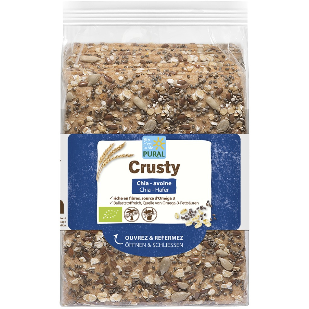 Painea crocanta de la Pural, din faina integrala de grau, rafinata cu ovaz si chia, reprezinta o sursa sanatoasa de acizi grasi omega-3 si este bogata in fibre. Sunt extrem de satioase incat potolesc rapid senzatia apriga de foame. Rupta in bucati mici se poate savura la o supa crema, gazpacho sau intr-o salata.