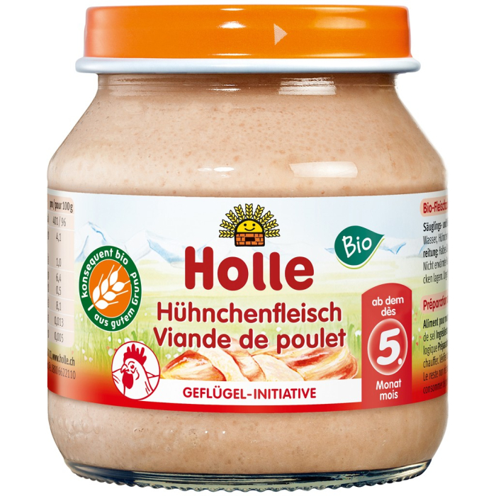 Piureul de carne de pui de la Holle este ideal in prepararea primelor retete de terci cu carne, in perioada de diversificare. Acest piure fin din carne de pui se incorporeaza usor si fara probleme in meniul celui mic. Fara adaos de sare, condimente, arome si fara gluten.