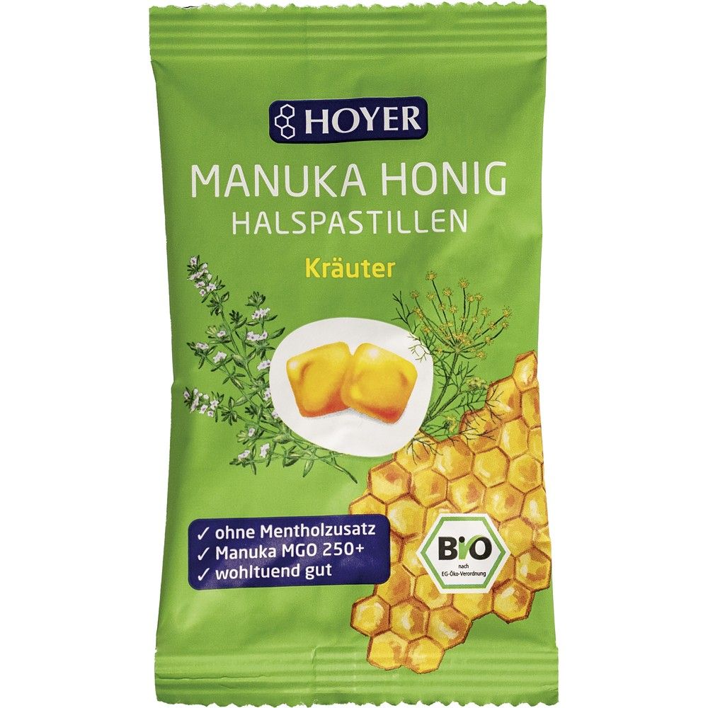 Aceste bomboane de la Hoyer sunt un adevarat leac sanatos si delicios pentru un gat cu probleme si suferind, caci continutul minim de metiglicoxal (250 mg) din mierea de manuka, ierburi aromatice va rasfata vocea si alina durerea. Metiglicoxalul (MGO) actioneaza importriva actiunilor virale. Nu contine adaos de mentol.