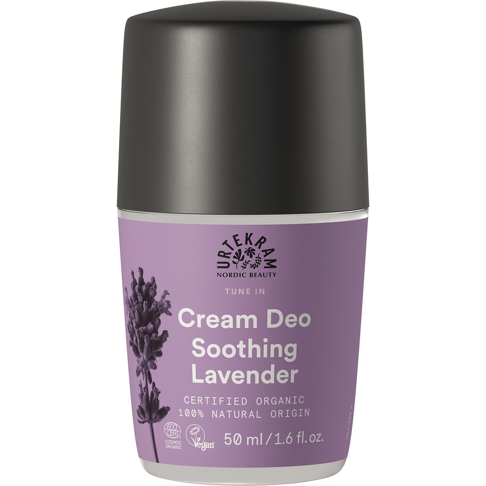 Deodorantul crema Urtekram cu lavanda protejeaza eficient impotriva mirosurilor neplacute. Fermentul probiotic si vegan din acid lactic, acidul hialuronic, combinate cu ricinoleatul, deodorizeaza pielea pe cale naturala si o hidrateaza. Uleiul bio de eucalipt si uleiul de lavanda ingrijesc pielea delicata de sub axila si va ofera un parfum placut.